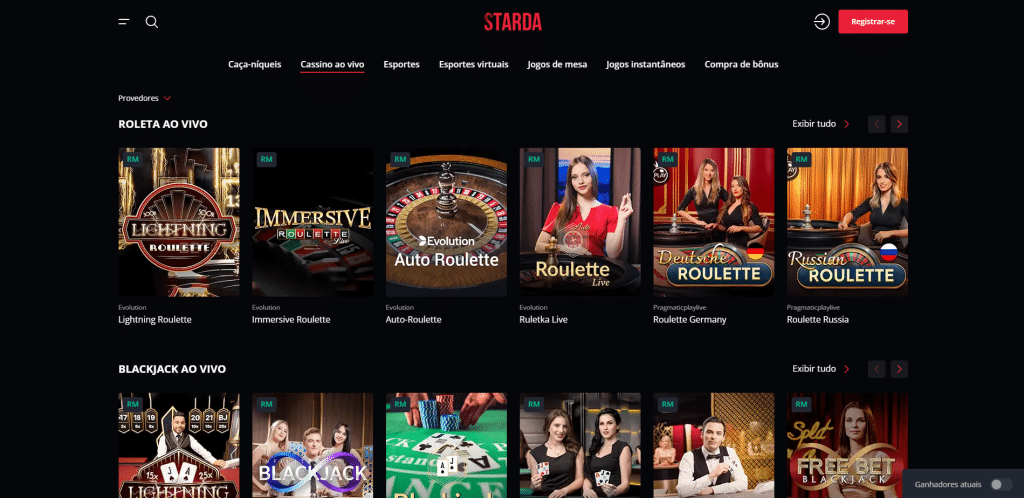 Na seção de cassino ao vivo do Starda Casino, você terá acesso a diversas opções em tempo real, que garantem diversão e entretenimento no conforto da sua própria casa. Algumas das principais atrações incluem: